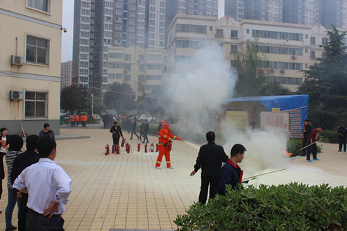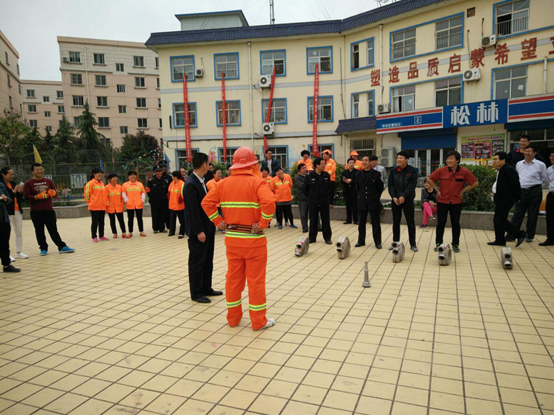 為了嚴格貫徹落實省市對于安全管理工作的相關規(guī)定,加強小區(qū)消防安全管理工作,進一步強化全體員工消防意識,增強防火自救能力,杜絕重大特大火災事故的發(fā)生,為業(yè)主營造一個良好安全的居住環(huán)境。4月27日下午3時在安谷苑小區(qū)廣場,物業(yè)公司聯(lián)合消防維保單位舉辦了以“ 預防為主,消防結(jié)合”為主題的消防演練活動。物業(yè)公司領導班子,員工代表,維保人員,業(yè)主代表共計40余人參加了本次演習。